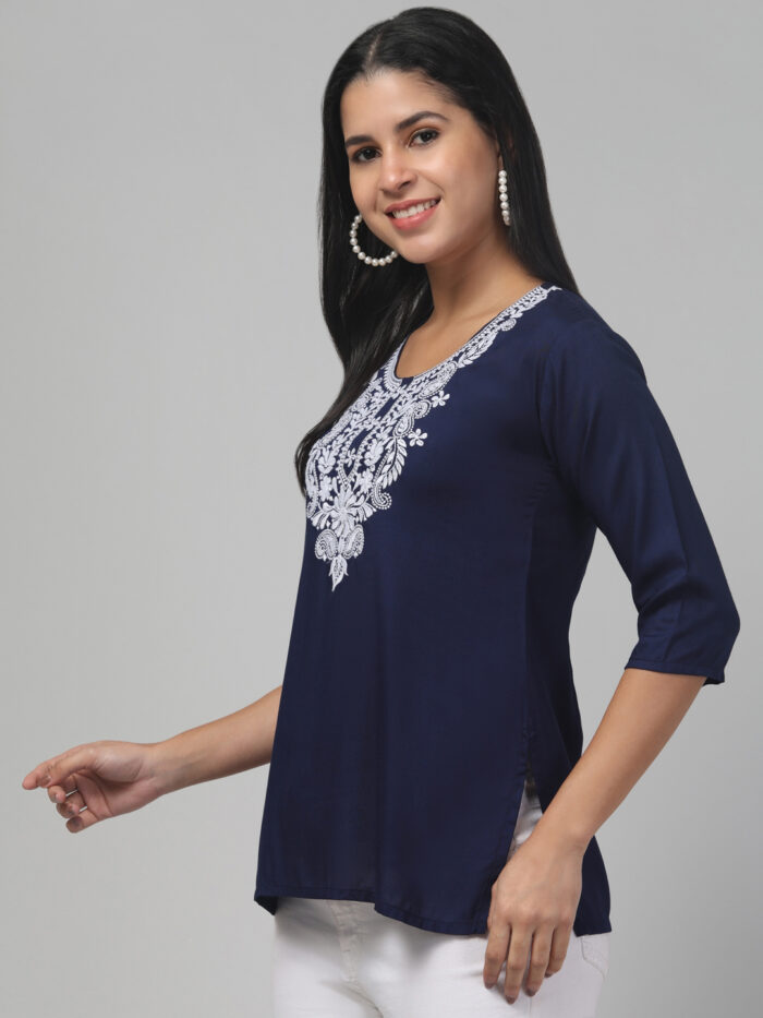 Name : women Navy Blue stylish and attractive kurti |Navy Blue short kurti | Women Round neck short kurti | Summer kurti | Designer Kurtis for Women Online | Navy Blue short kurti