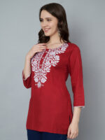 TREND LEVEL Kurti for Women Short Chikankari Kurtis for Girls, Lakhnawi Tunic Top Kurta Design for Ladies Woman Ethnic Kurtis Sleeve Plain Straight Embroidery-Maroon