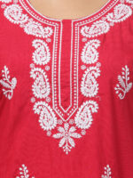 TREND LEVEL Women’s Cotton Lucknowi Embroidered Chikankari Straight Kurti | Women Short Lacknowi Kurti- Pink