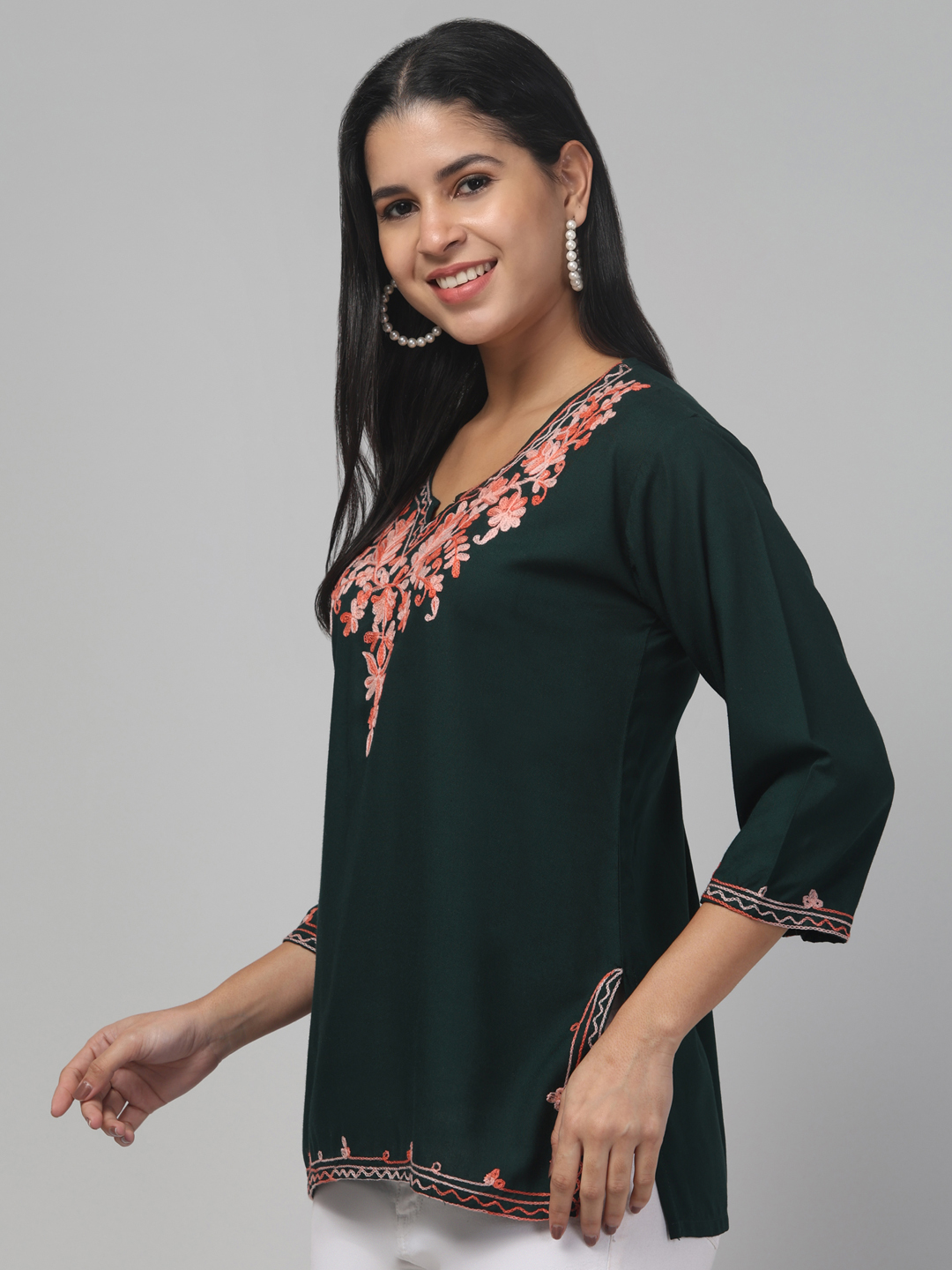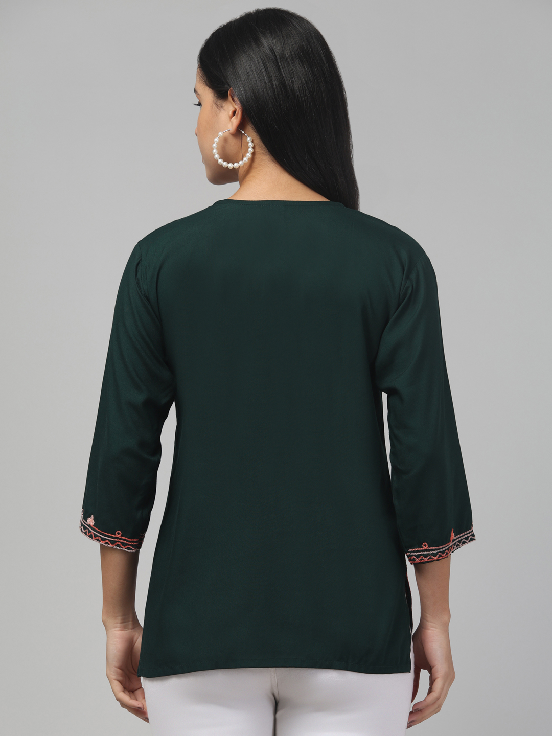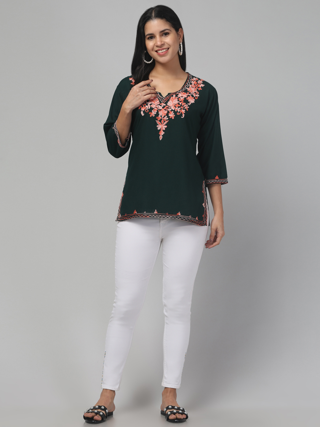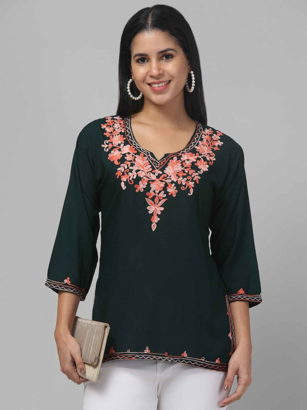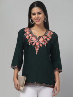TREND LEVEL Short Kurti for Women–Lakhnowi Chikankari Embroidered Ladies Kurta, Stylish Girls Top, Ethnic Half Kurtas, Tunic Design Woman Kurtis-Black