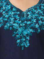 TREND LEVEL Women’s Embroidered Cotton Rayon Straight Kurta in, Perfect for Casual and Semi-Formal Events- Navy-Blue
