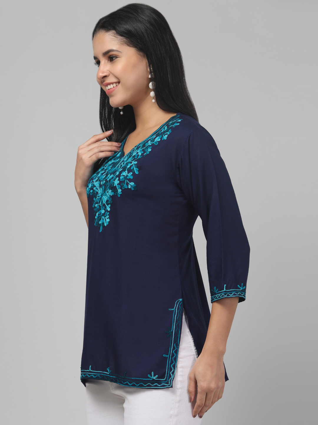 Trend Level Kurti For women Navy Blue stylish and attractive kurti | Navy Blue short kurti | Women Round neck short kurti | Summer kurti | Designer Kurtis for Women Online
